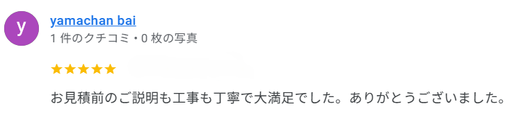 また、5つ星のクチコミ評価までいただき重ねて御礼申し上げます。