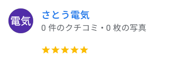 グーグルマップ クチコミに5つ星をいただきました!