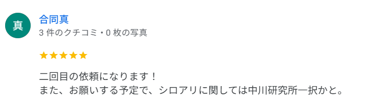 グーグルマップ クチコミに5つ星をいただきました!