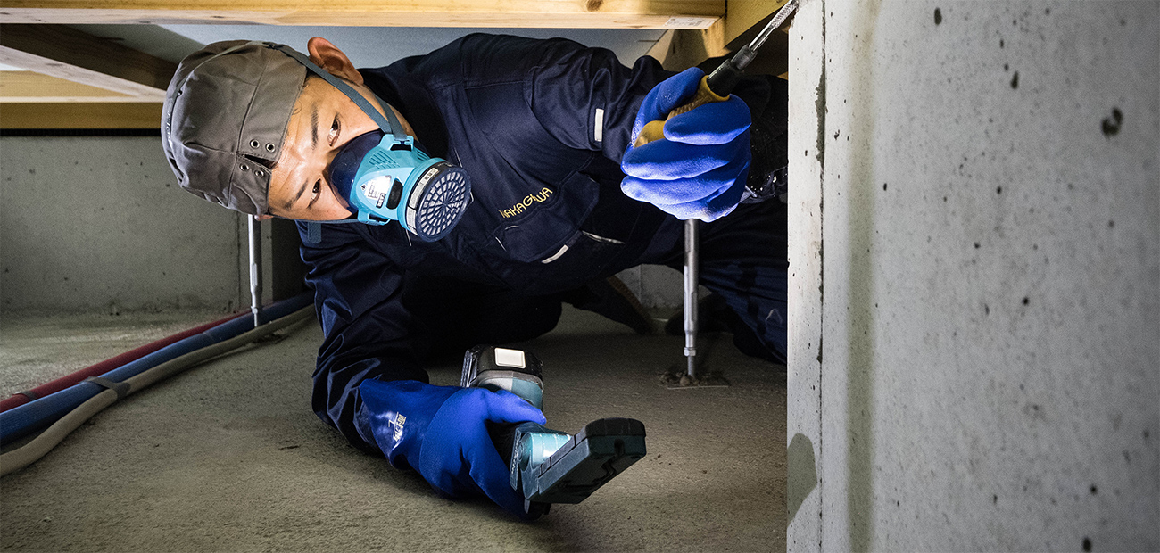 これまで20年間で延べ10,000件以上の調査・施工実績をもとに他社が駆除できなかった案件も自信を持って解決致します。